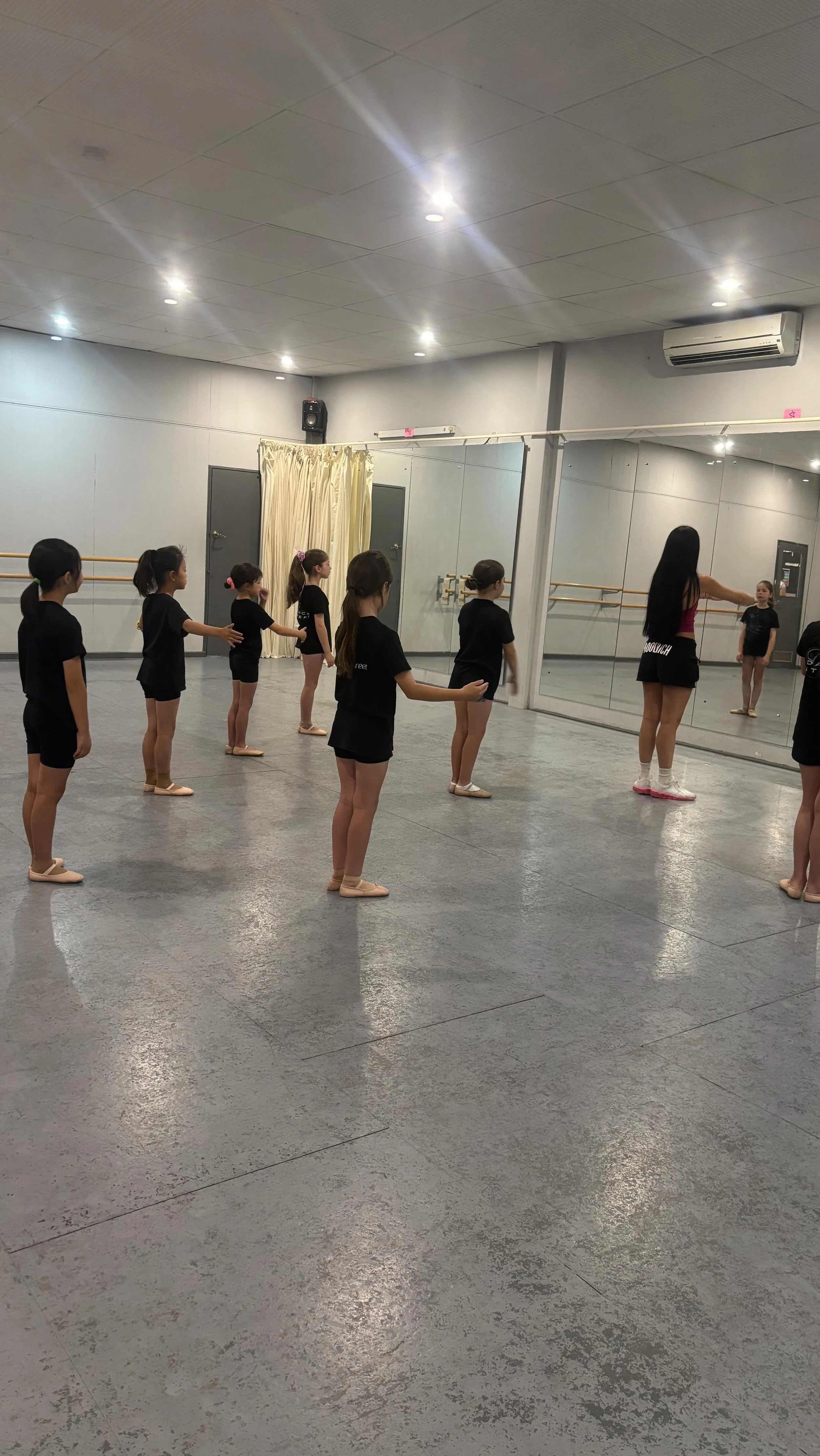Classical ballet dance technique working on conditioning, technique instruction and routine